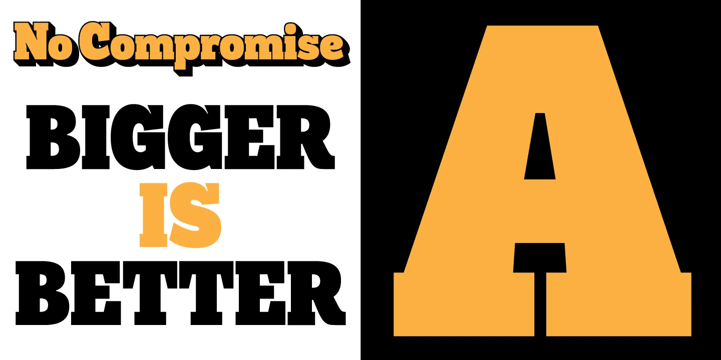 Anultra Slab is, you guessed it… An ultra-bold slab serif! It is a hard-hitting headliner, designed to be set LARGE. Think editorial spreads and event banners. Because it’s a single-weight typeface, no compromises were necessary to get it interpolatable with other weights, so it is as bold and tight as intended. Don’t miss the 3D ‘xtrude’ style that can be layered behind the regular to create two-colour, photo-lettering style text. Very seventies. Very cool. A companion typeface for Alight Slab.