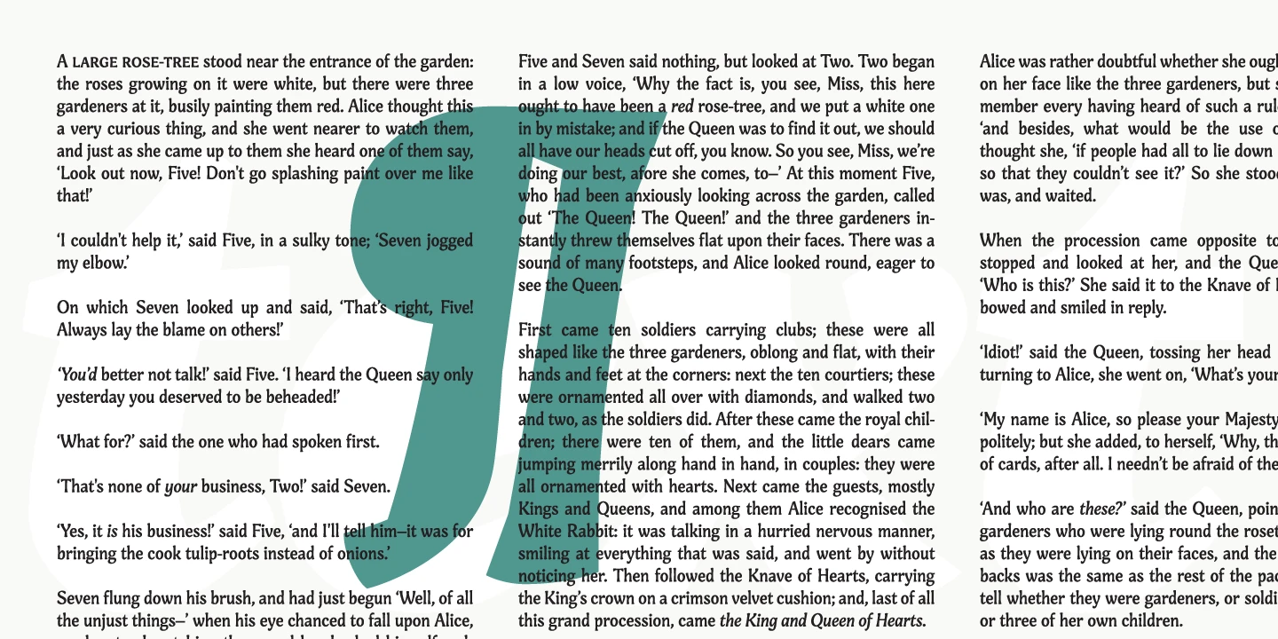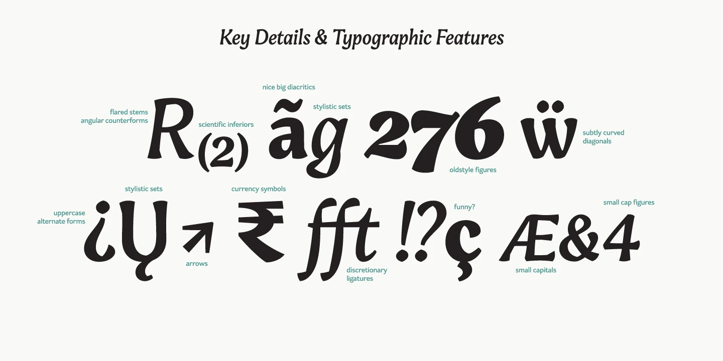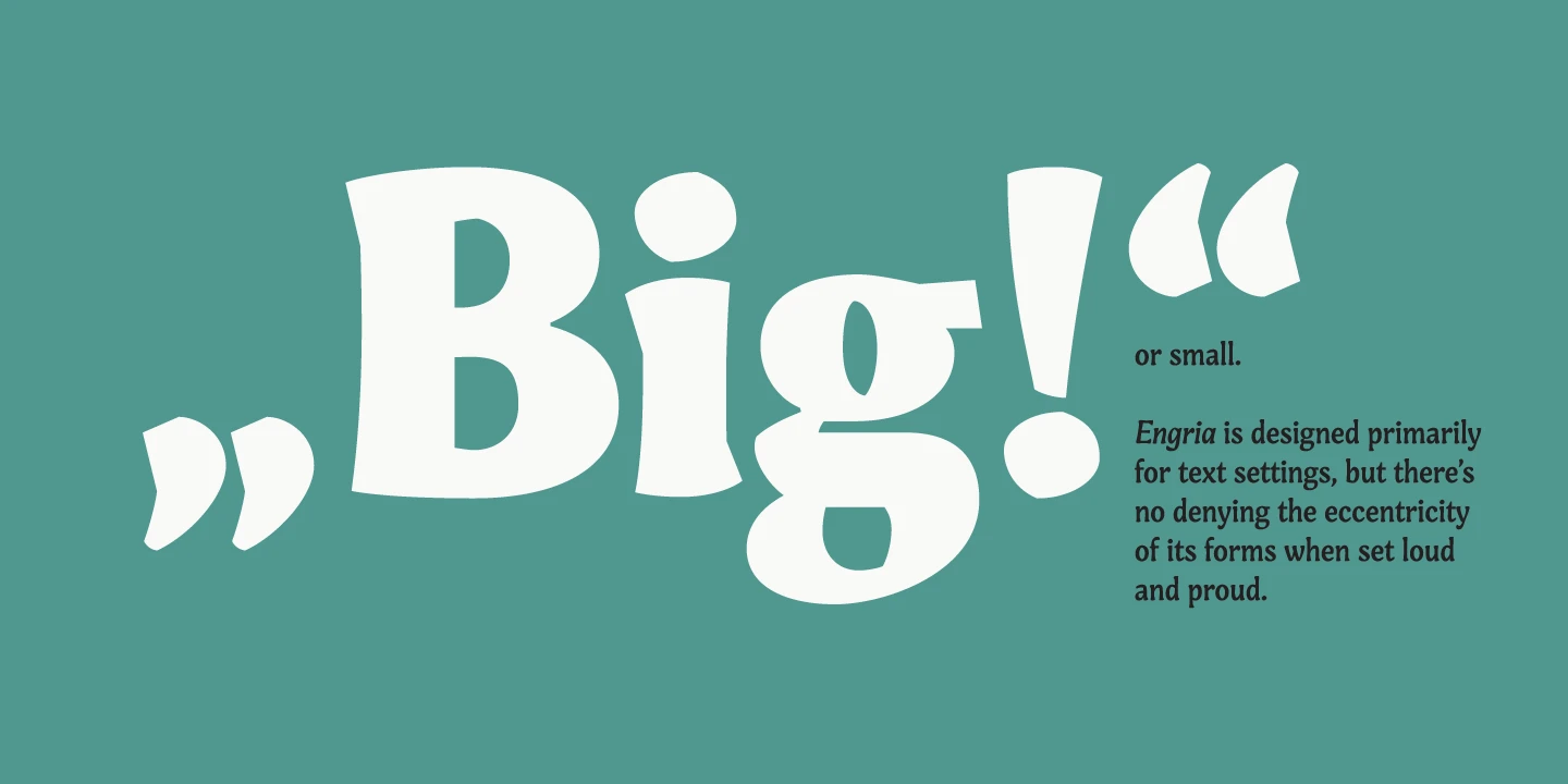 Engria nimbly treads the fine line between sans and serif. Its wedge-like serifs resemble engraved forms created by the splayed shape made by the bristles when clamped together. At the same time, it looks like a stressed, flared sans. This mixed approach lends a unique voice. Thanks to its characteristic details, it is highly legible in text sizes and shines in display sizes. Engria has four weights, with italics, and makes a perfect addition to any designer’s typographic arsenal.