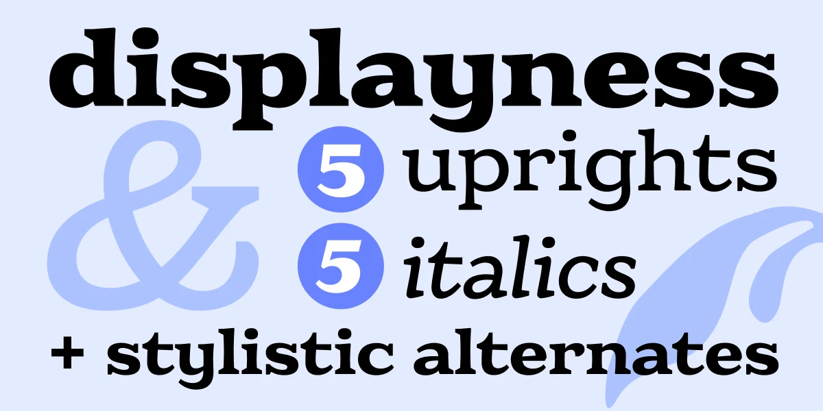 Eroika Slab is a robust display serif intended to be set large. Eroika’s “displayness” stems from its wide stance, tight spacing, equal cap and ascender heights, flared stems, and large x-height. The italics, in particular, are quite unorthodox, with their vertical serif cut-offs and foot serifs where most fear to tread (’scuse the pun). Perfect for book covers, craft beer logos, boxing paraphernalia, and tattoo magazine pull quotes. And probably a whole lot more besides!