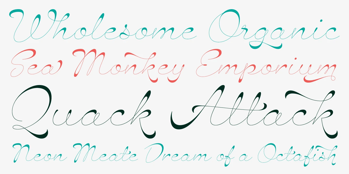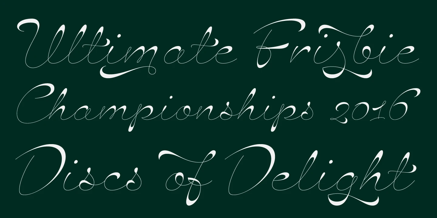 Hazel Script is a finely crafted, elegant, connecting script. The contrast in the face is not based on any ductal logic. The thick parts of glyphs are purely aesthetic devices, placed to give the otherwise monoline font an intriguing rhythm. The oversized uppercase letters follow a mid-century lettering skeleton, and swashes can be used judiciously to add spice to the text. Hazel Script would add compelling visual interest to glossy magazines, wedding invitations, and birth announcements.