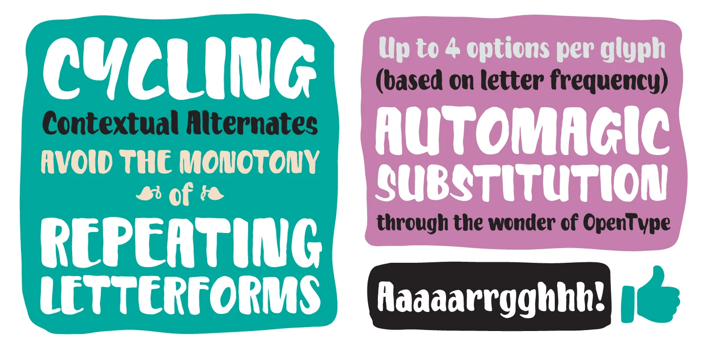 Kake is a typeface in the style of a hand-painted sign outside a temple in Ubud, Bali. The unique hand-made aesthetic can be increased using alternates to avoid the monotony of repeating letters. The attention to design details makes for type that looks like it isn’t type. Kake is full-on display typography. Food packaging, magazine headlines, and fitness gear! It’s legible for small blocks of copy, but don’t go setting essays in it. Unless you really want to… in which case, go for it.