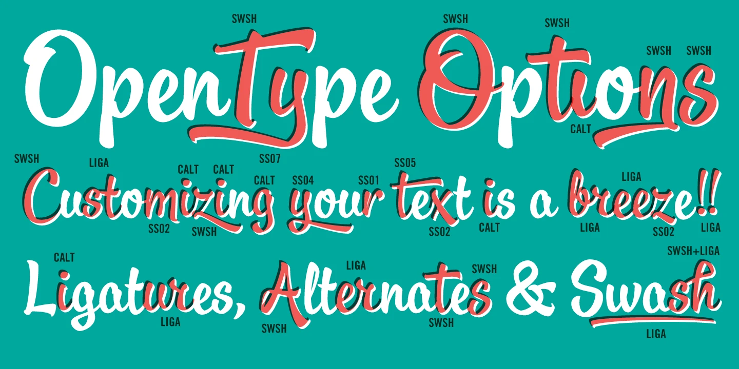 Oldskool Script is a bouncy, connected script inspired by graffiti lettering. Typographic features abound to make it a powerhouse of a font. You can go all out with the swashes and alternates or rein it in for a more subtle approach. Whatever aesthetic you choose, Oldskool Script will surely fit the bill. It’s so versatile it could grace the cover of a hip-hop album or baby shower invitations. Dave Rowland had a lot of fun making it; now it’s over to you visual creatives to have fun using it.