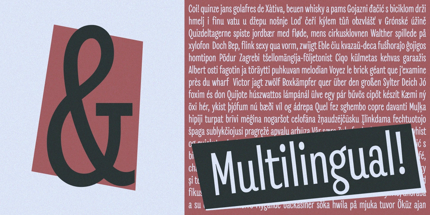 Revla Sans Text is part of a condensed superfamily designed to put the fun back in your text! All five families share the same structure but boast unique personalities tailored for different uses. Round, Sans, Serif, Slab with bouncy baselines, and a more subdued Sans Text created for slightly longer reads. Each works fantastically well independently or with other members of the family. The possibilities are endless for graphic designers and typographers looking to infuse their work with character and charm.