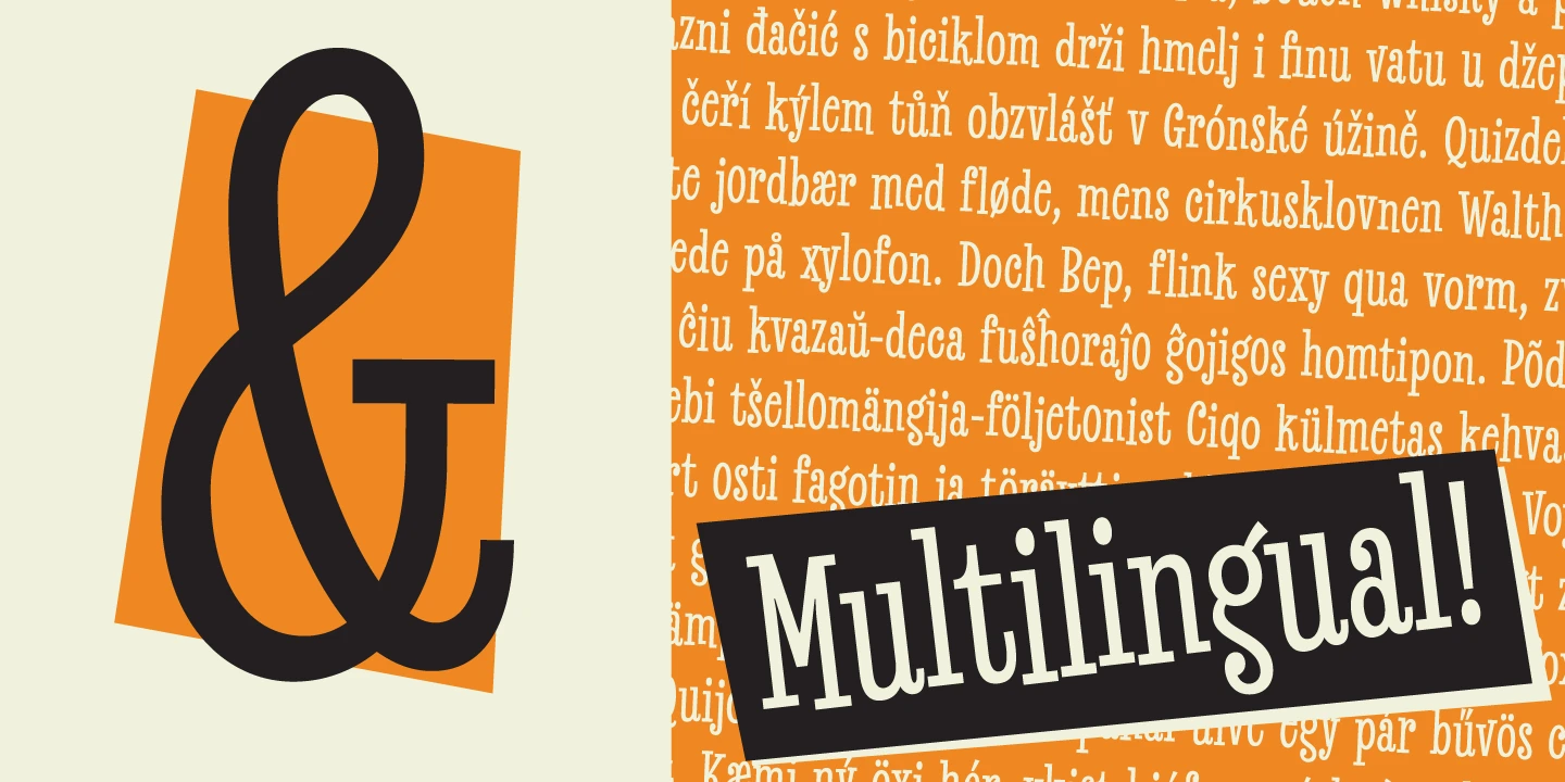 Revla Slab is part of a condensed superfamily designed to put the fun back in your text! All five families share the same structure but boast unique personalities tailored for different uses. Round, Sans, Serif, Slab with bouncy baselines, and a more subdued Sans Text created for slightly longer reads. Each works fantastically well independently or with other members of the family. The possibilities are endless for graphic designers and typographers looking to infuse their work with character and charm.