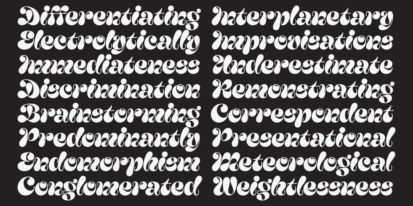 Yink is wild — in the best way possible. It is a script equivalent of wearing sequins to breakfast: unapologetic, attention-seeking, and having more fun than everyone else in the room. Pushing big, bulbous terminals up a notch! It’s a shamelessly over-the-top font perfect for big, bold branding, bespoke candy shops, week-long music festivals, laugh-out-loud greeting cards, thought-provoking art exhibits, and more!